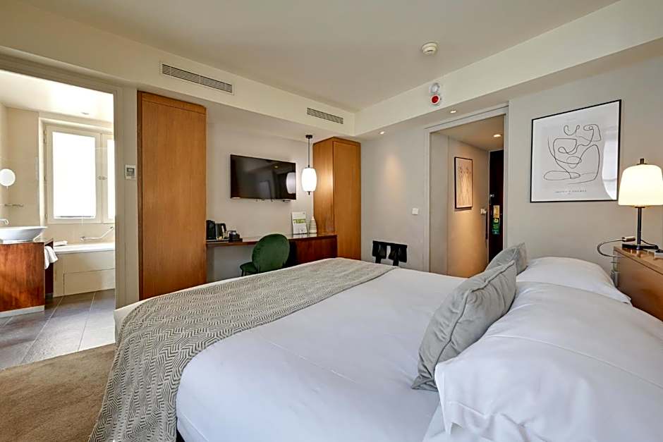 This room is suitable for guests with reduced mobility. It features free WiFi and a flat-screen TV with satellite channels including Canal+, beIN sports and RMC Sports. There is also tea facilities and a Nespresso coffee machine, a mini-bar, a safe and ironing facilities. La Bottega toiletries are provided and a bottle of water is offered upon arrival.