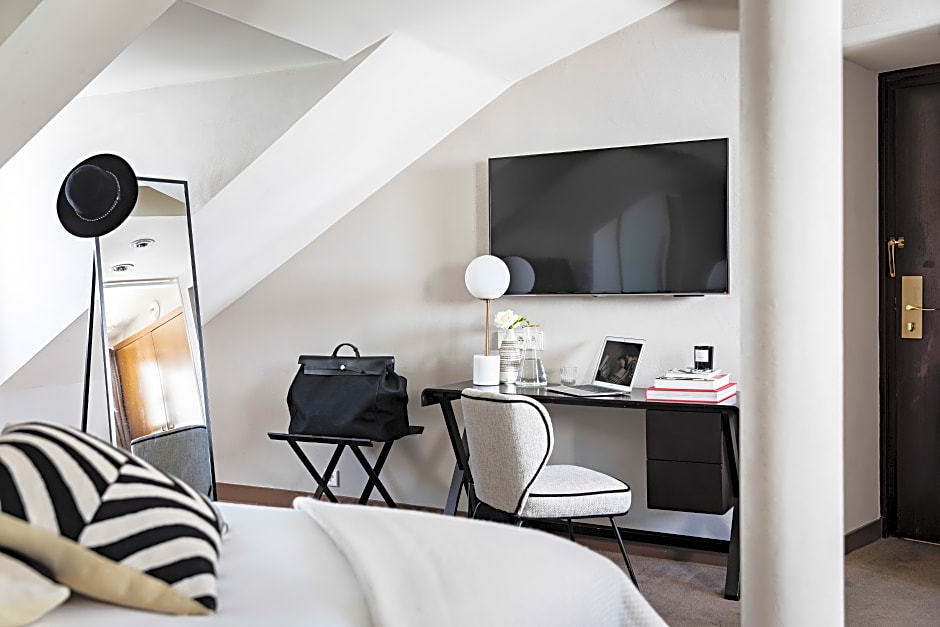 This spacious room offers an private bathroom with luxury La Bottega toiletries, bathrobes and slippers. Additional facilities include free WiFi, a flat-screen TV with satellite channels including Canal+, beIN Sports and RMC Sports, a Nespresso machine and a kettle. There is also a mini-bar, a safe and ironing facilities. A bottle of water and sweets are offered upon arrival.